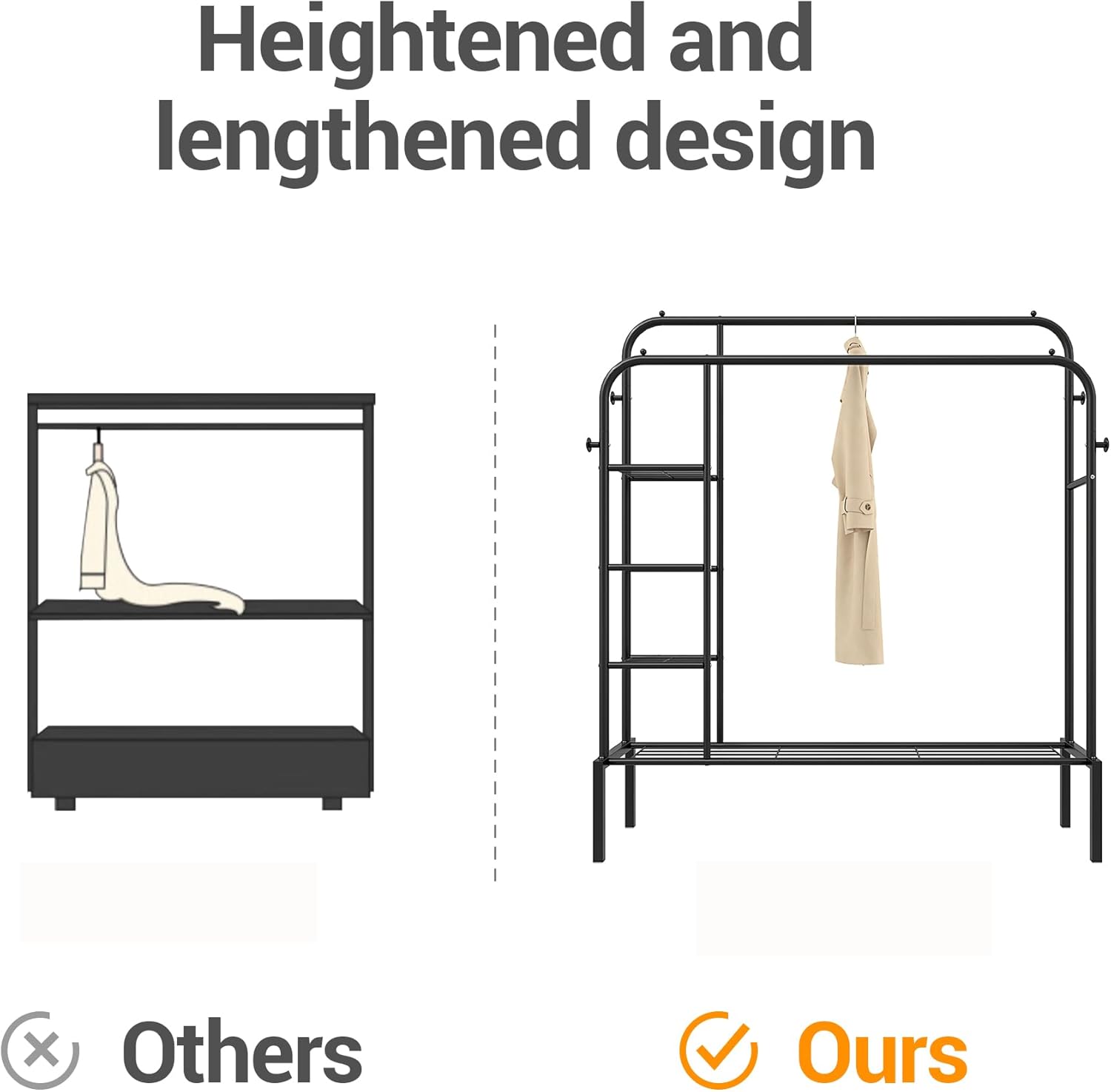 مستحمل كل شيء، مصنوع من معدن يتحمل حتى 130 كيلو، يعني ما تخاف على ثقل الملابس والأحذية.