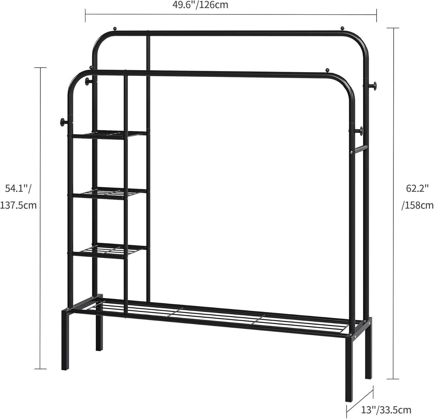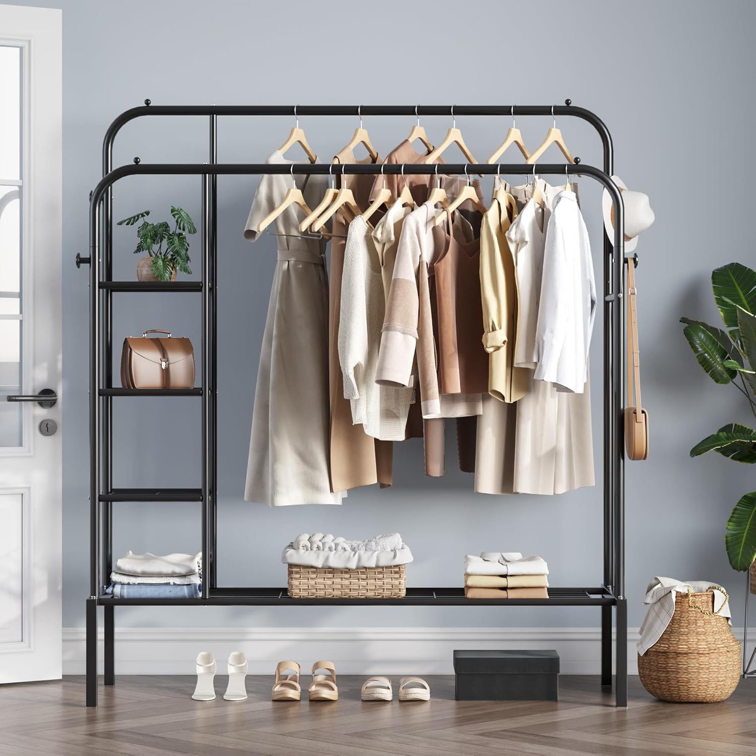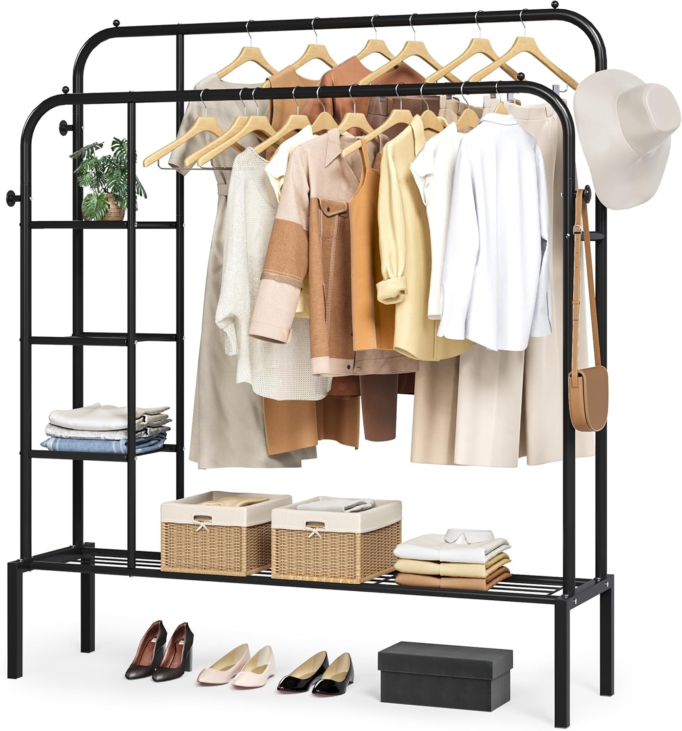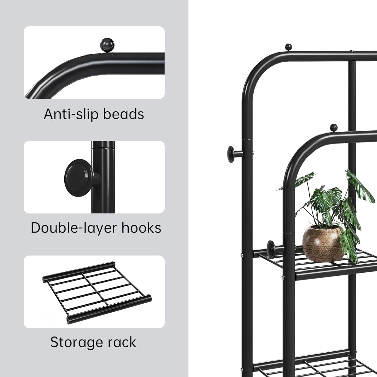يجمع لك رفوف وشماعتين وخطافات جانبية، كل شيء تخزنه بكل ترتيب وسهولة.