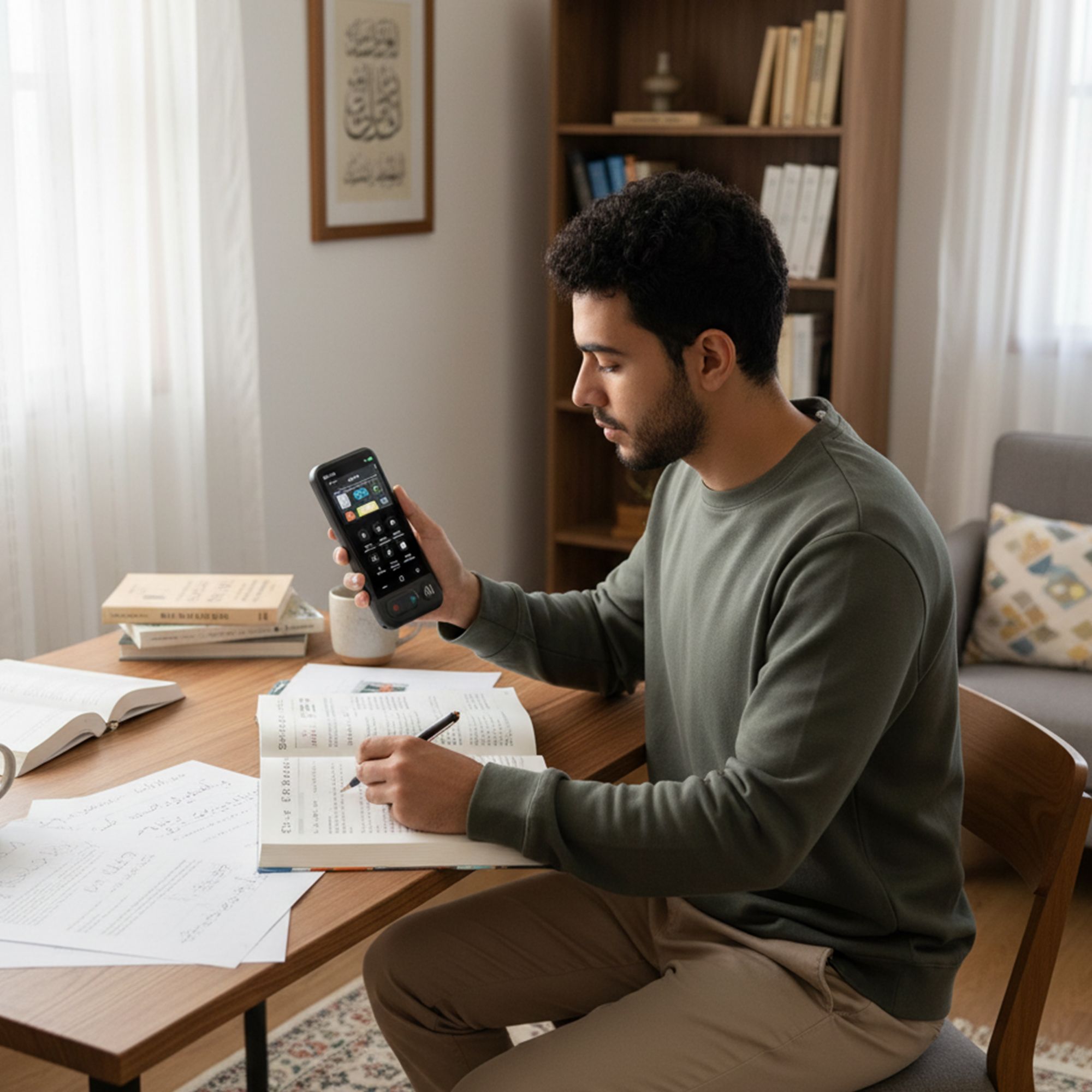 جهاز بمزود بكاميرا عالية الدقة، تقدر تقرا أي نصوص بسهولة، حتّى لو كانت في كتب أو لوحات إعلانية.