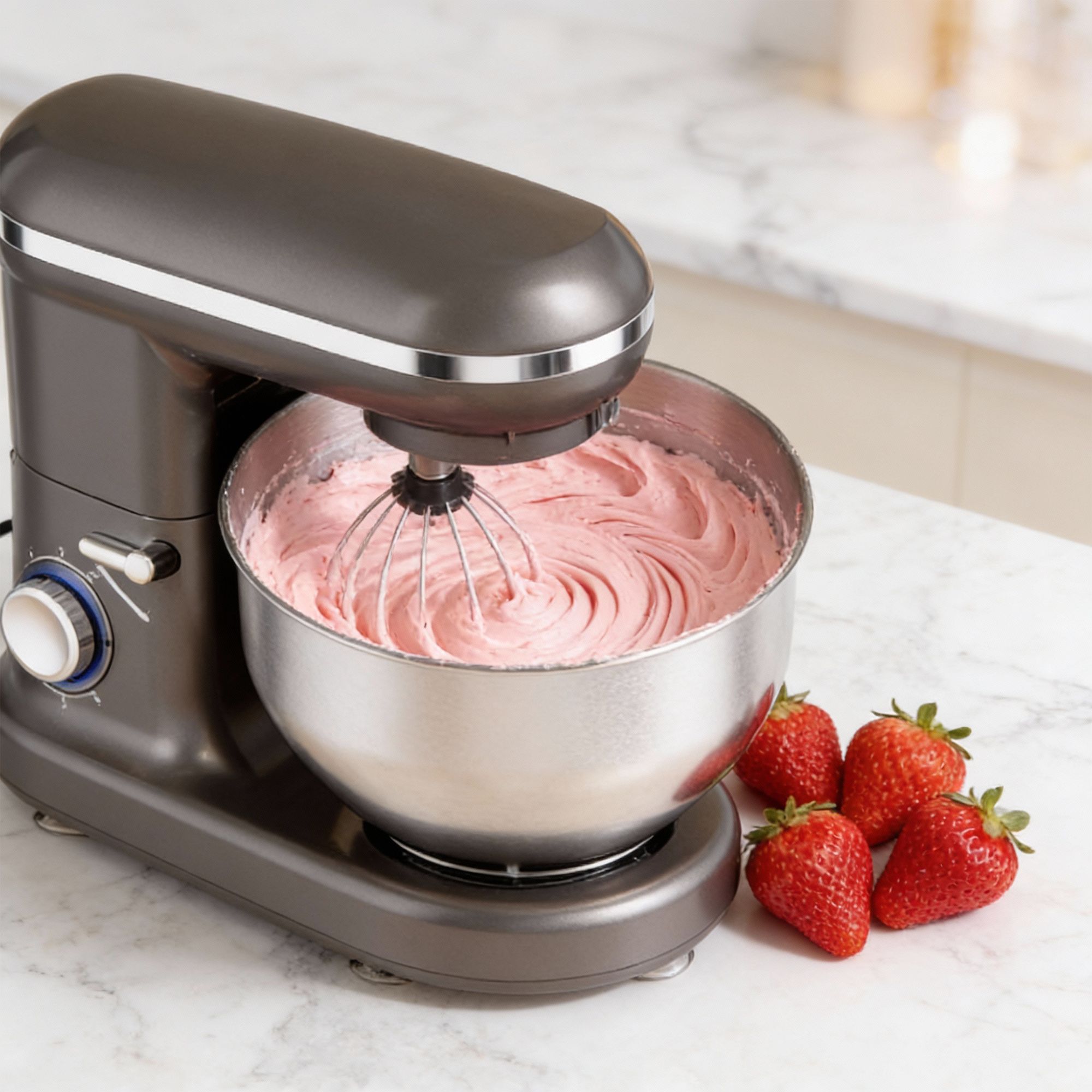 الماكنة دي قويّة جداً، بتخلي العجن والخلط يتم بسرعة وسهولة، مهما كانت الوصفة.